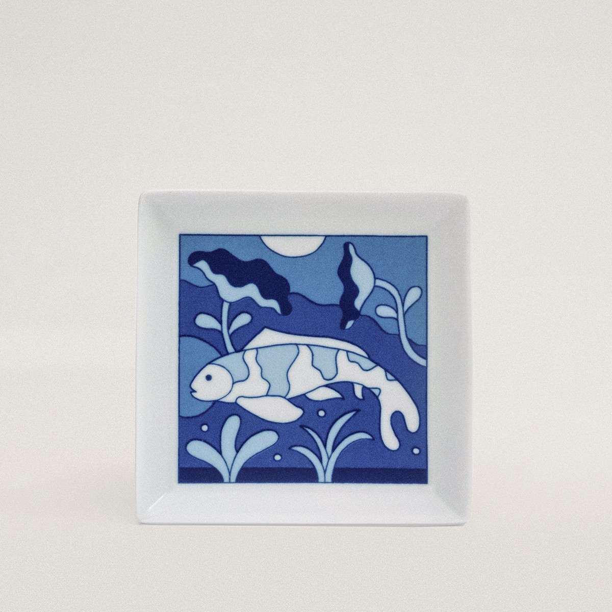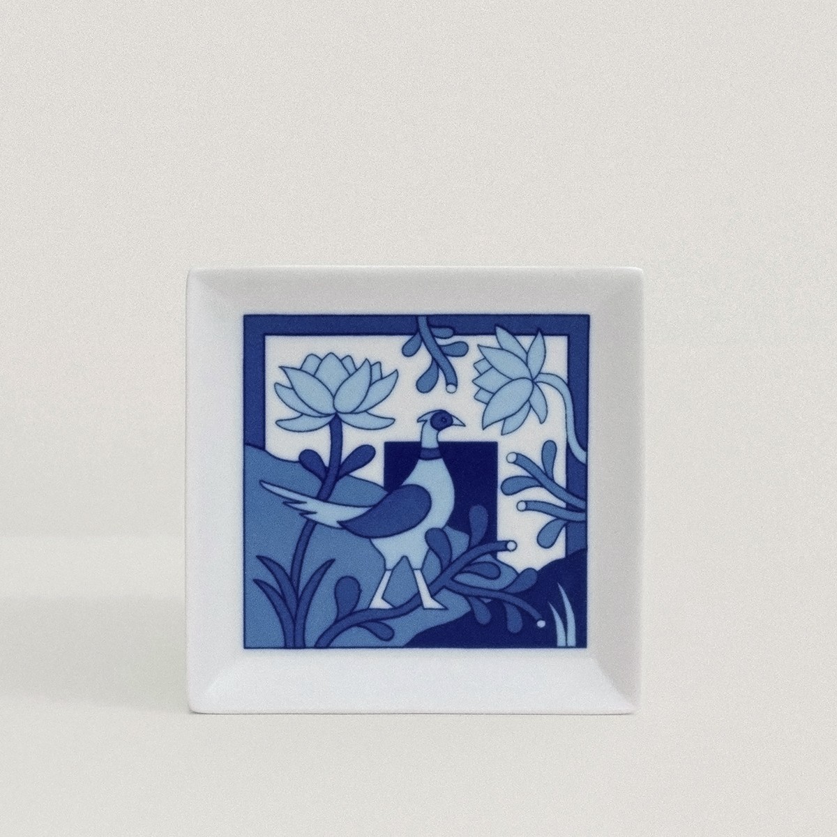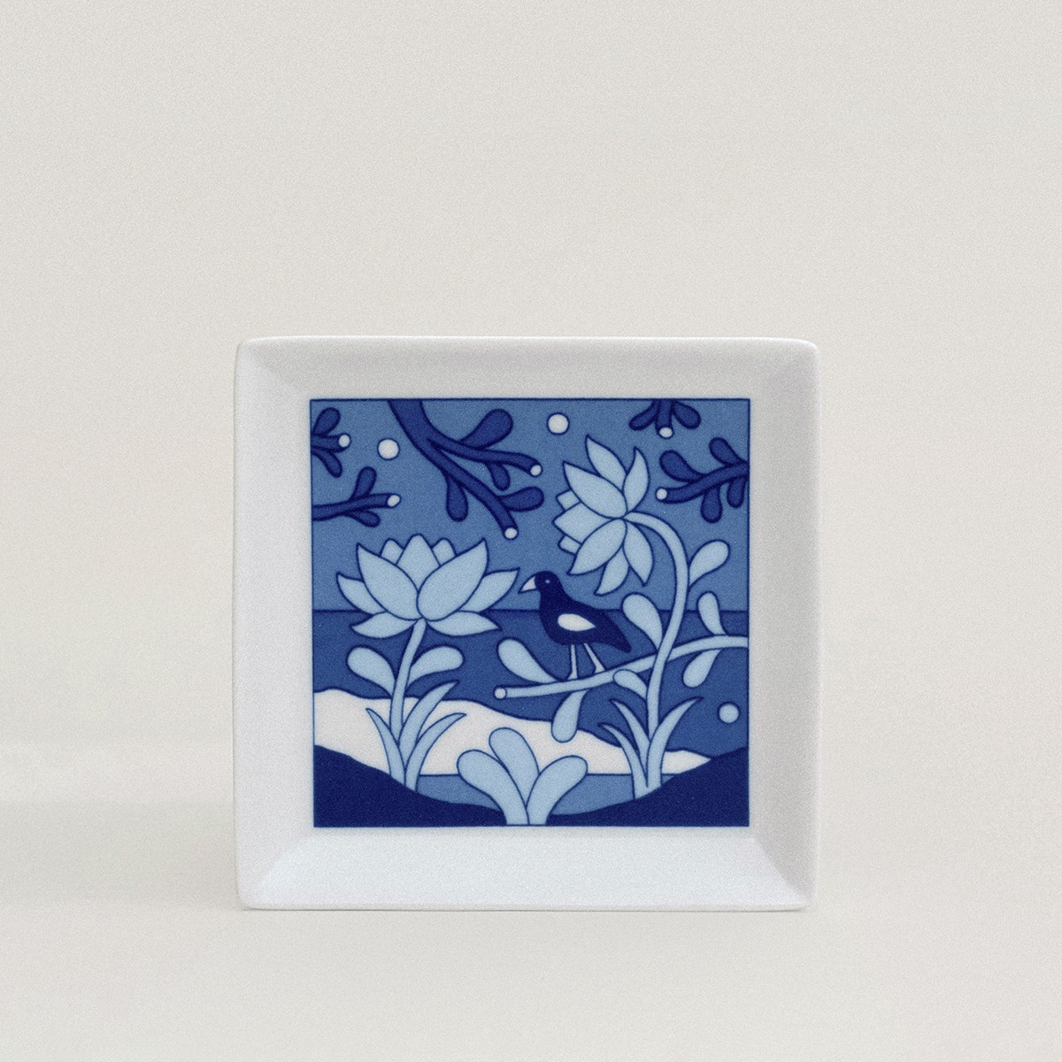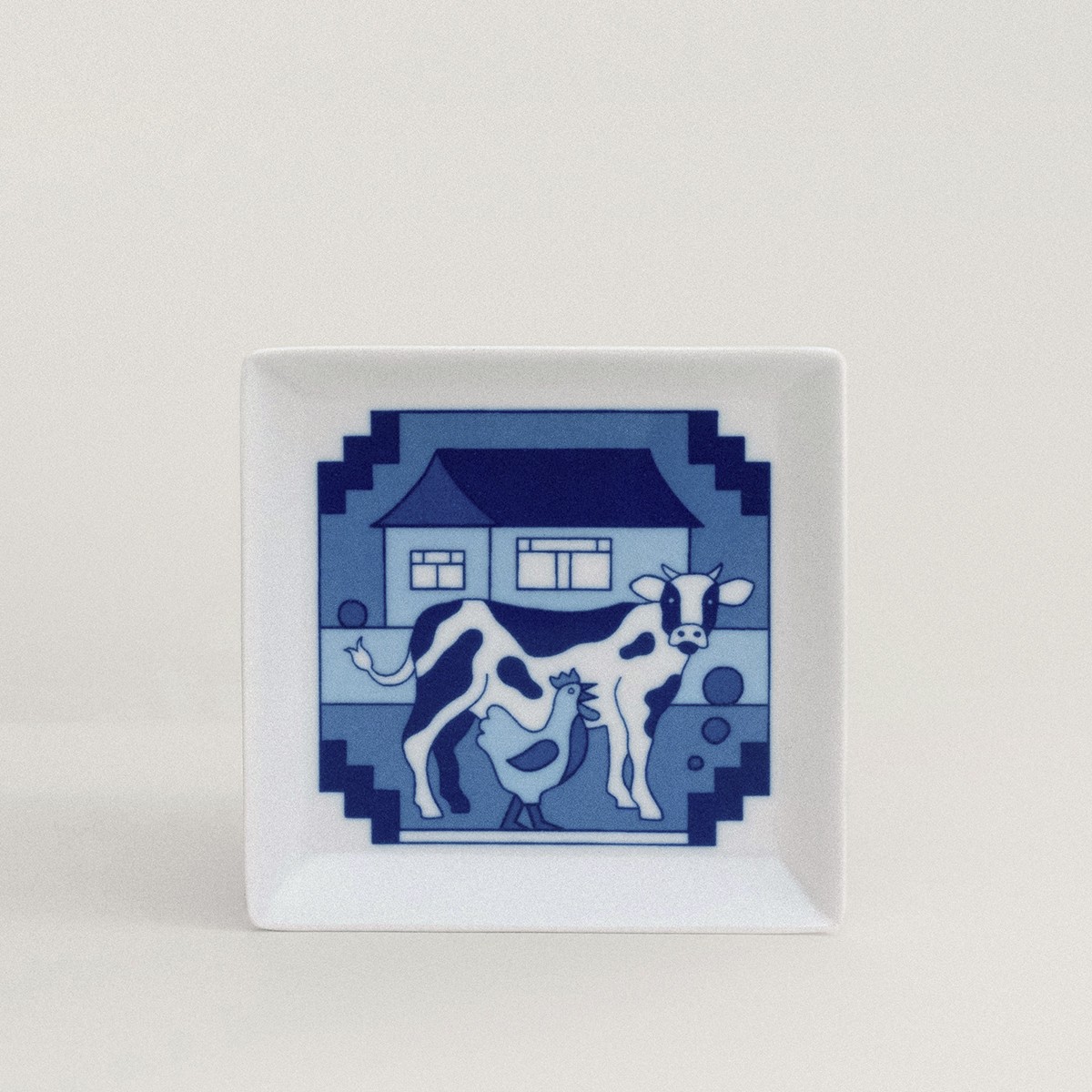 In this series of small square dishes, also known as mamezara or ‘bean plates,’ Jacco Bunt revisits traditional blue-and-white porcelain motifs. His illustrations, inspired by daily life in Japan and the Netherlands, nod to the connection between Arita and Delft. Artisans apply the designs by hand beneath the glaze for lasting durability.